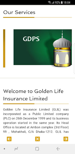 Golden Life Insurance Limited (GLIL) was incorporated as a Public Limited company (PLC) on 26th December 1999 and its business operation started in the same year. Its Head Office is located at Ambon complex (3rd Floor) 99 , Mohakhali, C/A Dhaka-1212. GLIL has Zonal Offices at Dhaka, Comilla, Chittagong, Khulna and Barisal. The Company has 250 branch offices in different places in Bangladesh.
