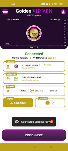 GOLDEN VIP NET - Secure Fast VPN is an online VPN service provider with several robust VPN protocols (UDP, TLS, TCP, HTTP, HTTPS, SSH, DNS, Wireguard, Openvpn, Onenconnect, Anyconnect) and blazing fast VPN connection. No further configuration is needed. With only one click, you can access any website and application.