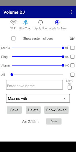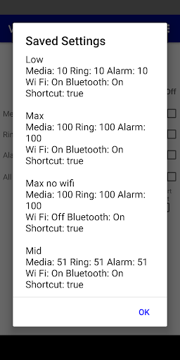 This app is very simple to use. It allows you to adjust the 3 types of volume on your phone: Ring volume (calls and notifications), media volume (music, videos, games, other media) and alarm volume. Save a group of settings and easily update volumes accordingly. For Android versions 7.1 and higher, create shortcuts for saved settings