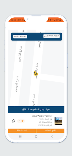 عند بدء الرحلة سيتم ايصالك اشعار بان رحلتك قد بدأت وعند وصولك الى نقطة الوصول تستطيع تقييم السائق وكتابة اذا كانت هناك اي ملاحظة على الرحلة او على السائق.
