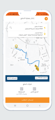 يجب ان توافق على فتح GPSليتم تحديد موقعك في خرائط جوجل ويجب ان تكون فاتح للأنترنت وبعدها يجب عليك تحديد موقعك الحالي وإدخال المكان الذي تريد الذهاب إليه (وجهتك) وبعدها اختيار نوع السيارة التي تريد ان تبدا مشوارك معه من سيارة اجرة، سيارة خصوصية، سيارة VIP وبعدها سيتم عرض وجهتك نقطة الانطلاق ونقطة الوصول وعدد كيلومترات كمسافة الرحلة المطلوبة. بعد اختيار نوع السيارة سيتم عرض واجهة اختيار لطريقة الدفع التي تفضلها لطلب الرحلة اما دفع كاش او عن طريق المحفظة وسيتم عرض السعر والمسافة التقريبية المطلوبة منك قبل بدا الرحلة علما بان السعر والمسافة قد تقل او تزداد حسب الرحلة وعدد الكيلومترات الفعلية التي قام بها السائق.