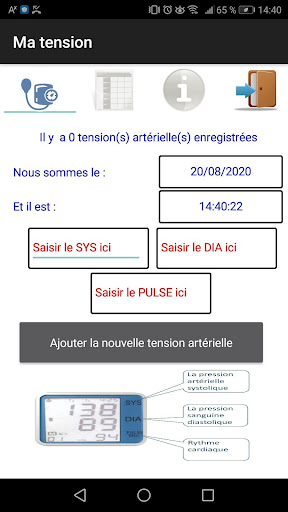 Ma tension artérielle est une application qui vous permet de sauvegarder vos informations de tension artérielle fournies par un tensiomètre. Cette application n'est pas un dispositif médical.