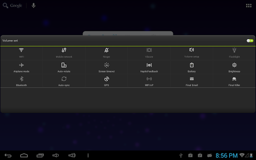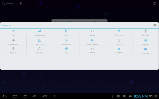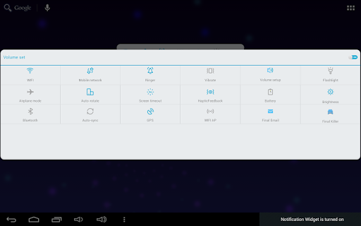 --It will provide the fastest way to turn on/off your hardware model, such as wifi, gps, flashlight, mobile data, brightness, bluetooth, screen timeout, battery indicator and any setting options you want.
