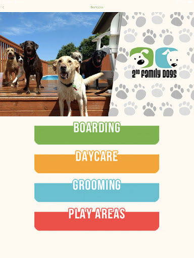The 2nd Family Dogs App allows you to enroll as a new guest and sign-up for boarding, daycare and/or grooming services. You can direct dial your vet to request your pet’s records. You’ll have easy access to all information about 2nd Family Dogs – all services and pricing, our staff, facility details and more. Best of all you get to