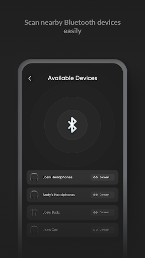 2) Scan devices: View list of nearby available Bluetooth devices & connect or pair with the device.