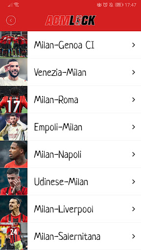 Sull'app ACM Lock potrai trovare gli sfondi per smartphone dell'AC Milan, aggiornati dopo ogni partita e suddivisi per giocatore o per match. Scaricali in alta definizione e rendi il tuo smartphone degno del tifoso che sei. Sei pronto a tappezzare di rossonero ogni schermata?
