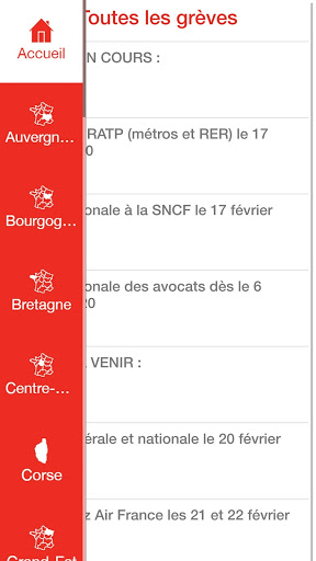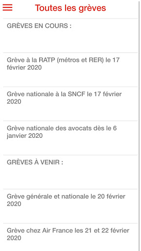 แอปพลิเคชั่นนี้หมายถึงการนัดหยุดงานในปัจจุบันและอนาคตในฝรั่งเศสที่นำไปสู่การรบกวนผู้ใช้