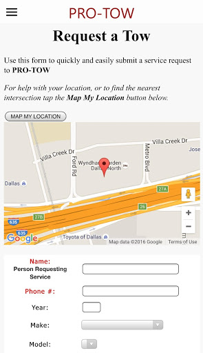 The Pro-Tow Mobile app is your 24/7 on demand resource in D/FW for Towing, Recovery,Transportation and Specialized Transportation.
