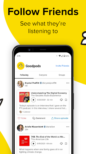 Follow friends: See which podcasts your friends are listening to in real-time