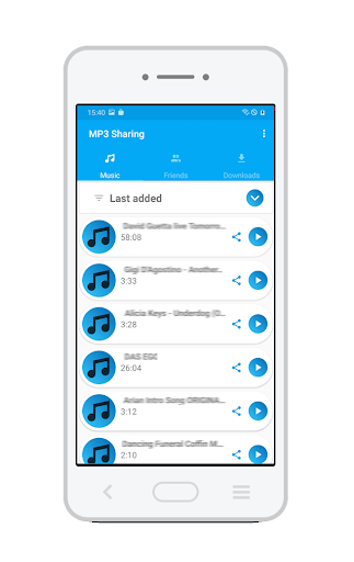 With our app you can easily and quickly share MP3 music files with your friends.