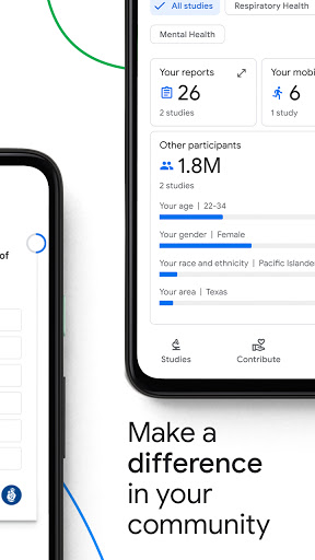 : Google Health Studies aims to create opportunities for more people to participate in health research. By contributing, you’ll represent your community and start improving the future of health for everyone.