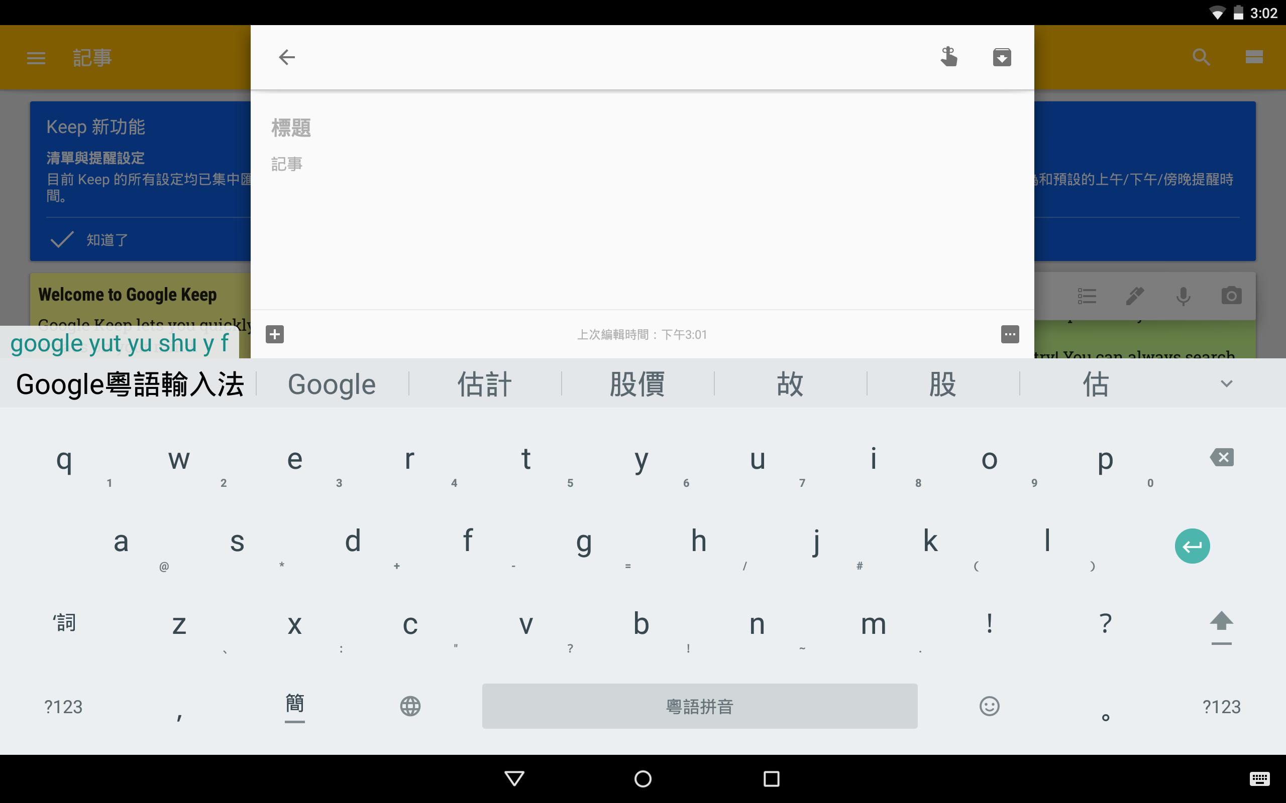 Google Cantonese Input makes text input smart and easy. Users only need to use English letters to write out how they think the Cantonese word sounds. With amazing word recognition and next-word prediction, Google Cantonese Input helps you type faster and more accurately on all your Android devices.