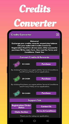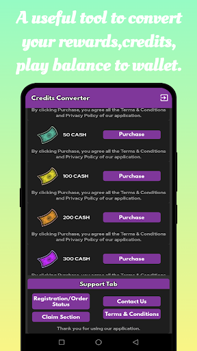 Exchange your credits,rewards,pay balance to wallet with Credits Converter.