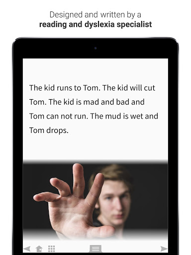 - swipe or non-swipe page navigation allows a reader to touch the page to aid decoding without accidentally changing pages