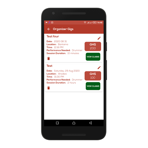 Sign Up as an organizer or performer, get verified and start placing your bids or gigs for verified performers to interact. Claims from the performers are received and the organizer is tasked to make a choice or can even call or text him/her for physical verification.
