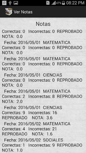  Llevar el record de las notas obtenidas, por fecha.