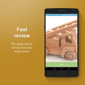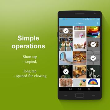 Short tap on the image copies it to the destination directory, the long - opens it in full view to see where the image can be moved and scaled.