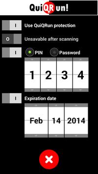 • Additional settings screen to tune your QuiQRun (set default protection, sounds, size of the shared QR codes, ...)