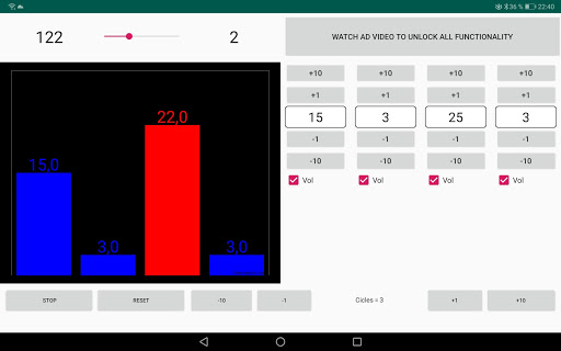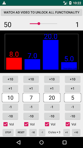 Interval timer for sport and yoga is simple four period timer. You can use it for yoga, pranayama, tabata, sports etc. Four periods are necessary, for example, to control breathing: Inhale, pause, exit, pause. You can set the duration of the periods and the number of cycles. You can enable or disable sound signals and change volume. Happy training and practice!