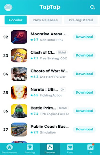 The view looks like it has the similar design, It shows you where you can find games trending list like taptap pubg and more games. So you’ll have an idea about games looks. As example this app show you where you can find the latest game and the popular game like taptap pubg.
