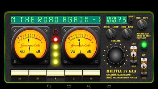 PLEASE READ THIS DESCRIPTION BEFORE USE! This is a music player for entire folders and individual tracks. It supports all music formats supported by Android. Even it can control third party players and show playing sound level. Interface simulates main controls and indications including alive VU-meters. Entire look and feel is based on some military equipment from near past. The name is fictitious. Remove A from name end to find same app without ads.