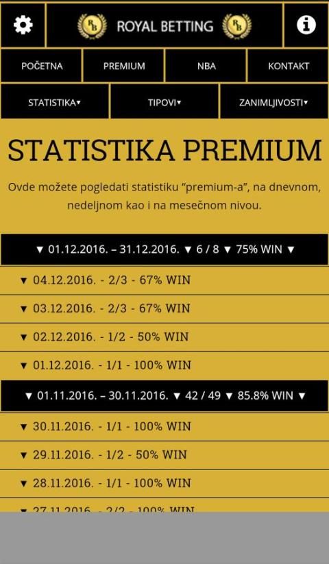 Royal Bettiing is a comprehensive application that helps in sports predictions, where you can follow the complete statistics by days, weeks and months, and where you can follow the latest attractions in this area.