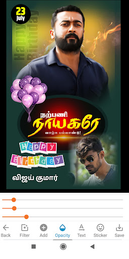 Tamil Birthday Poster Maker designed to work with Tamil as well as English language. The app design is so awesome you will fall in love with app once users use it. Stickers will add more beauty to your Banner.
