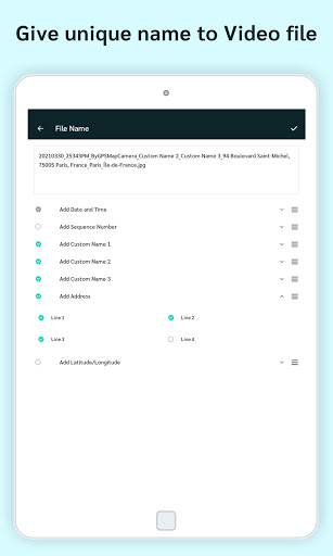 ➽ Use as a GPS tracker to track live location on video by adding longitude, latitude, address, date stamp, time stamp, and location stamp on videos