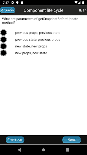 React Native - 150 questions is a React Native Quiz and Question Bank App. This app contains 150 React Native questions with solution. All questions are categorised according to concepts. You can turn on Quiz option to start exam of any topic. You can also access any question of a topic directly with question number.