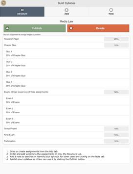 * Syllabus definition is easy, and we provide you with a pre-populated list of common assignments. You can add whatever other assignments you need as well.