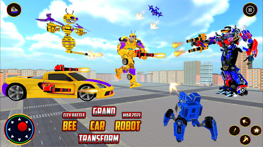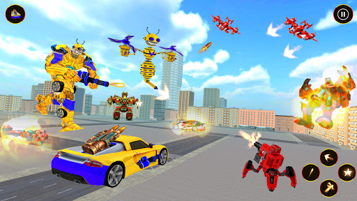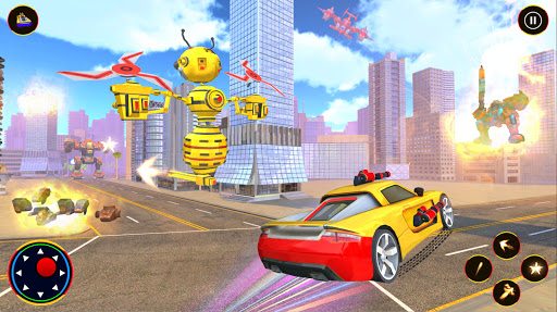 Here we are going to launch our well designed Robot Car Game as Flying Bee Robot Car Transform War Game. You might have experienced many bee robot car transforming games and flying robot games but this flying bee robot car war game is full of flying robot war games and robot fighting games. Flying bee robot - robot games are here for the players who love playing robot transforming games and flying robot games. Enjoy multi robot war in modern city of bee robot car transformation game and play with different objects like bee robot, robot jet and many other robotic objects in latest bee robot car: robot war games. Mostly players like robot car games and flying robot games which include multi robot transformation in Multi transforming robot games and flying bee robot games. This flying bee robot car war game is totally different from other robot transforming games as you can play as bee robot to fight against the alien robots in flying bee robot - robot games.