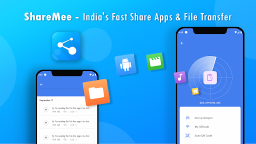 ShareMee - India's Fast Share Apps & File Transfer send your all needs perfectly. Just select videos, photos, music, apps & e-book, pdf files or anything, it will perfectly able to transfer them to your friends at a lightning speed too easily.