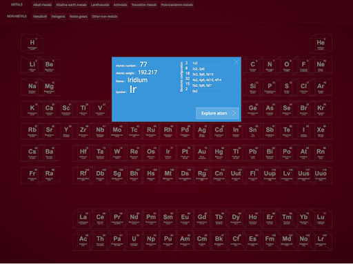 It has a "table view" and "explore atom view". Tap on an element to get info about that element and get into atomic view.