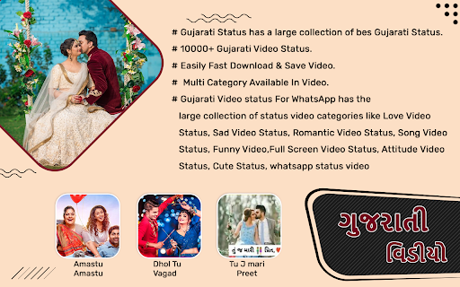 Serves a variety of gujarati videos which is suitable to post on any social media directly. Video Status App for whatsapp app is a great status application having large collection of gujarati videos.