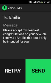 Write SMS by voice provides you easy in use system to write your SMS by voice. You do not need to type a text to send an SMS. Simple, reliable and beautiful. Speak your message and send. It will report you about delivery of SMS. Use voice to send a message. Voice SMS may come in handy in the car or if you do not like to type.