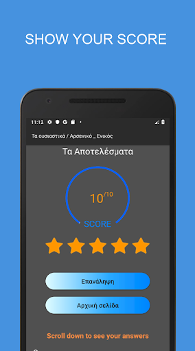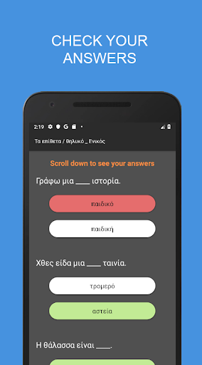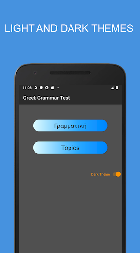 These quizzes cover an array of grammar topics from proper usage of various verb forms and tenses to adjectives and nouns as well as different vocabulary topics. Greek grammar test has light and dark themes to facilitate learning and comfort.