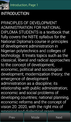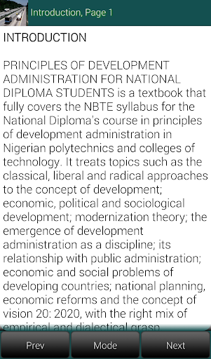 The textbook fully covers the NBTE syllabus for the National Diploma's course in development administration in Nigerian polytechnics and colleges of technology.