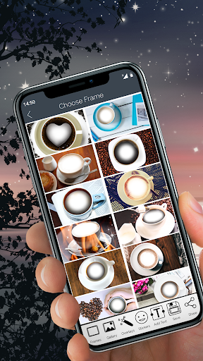 with a simple interface that offers a great sticker pack and the option to add text on photos and overlay filters for pictures. It will create wonderful coffee photos with high definition. Browse a photo from your image gallery or capture a new one using your phone’s camera, put them in a cute coffee frame and add fonts on photos!