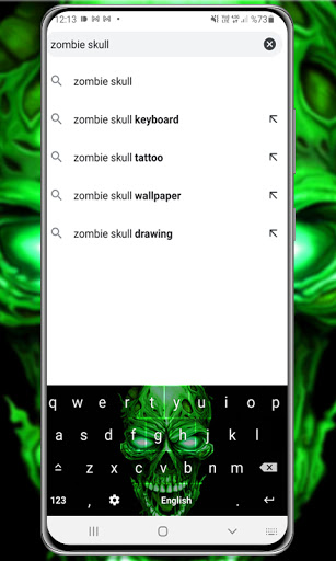 Our Green Zombie Skull Keyboard Theme supports English, Arabic, French, Russian, Greek, Deutsch, Hindi, Japanese, Korean, Italian, Spanish, Chinese and Persian.