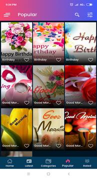 Now get all Greetings Card & Wishes Images for free to share with your your loved ones using our free greetings cards app. It's providing All Greetings & Wishes Images in different categories like Daily wishes, Special day wishes, Hindu, Christian, Muslim, Jewish, Sikh and Pagan Festival wishes. In each category you will get lots of beautiful wishes images, Cute animated images, GIF images that you can share in single click on social media network like WhatsApp, Facebook, Twitter..etc. and you can also download our Free All Greeting Cards & Wishes Images to your SD card.