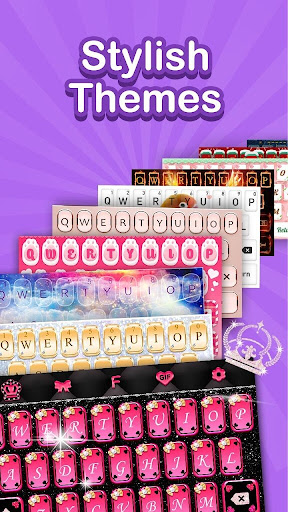 - Keyboard with personalized keyboard background and keyboard themes with emojis.