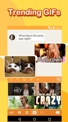 Discover the best GIF with GIF Keyboard to sum up what you want to say. Search millions of GIFs fits you. Categories like reactions, trending topics will inspire you to find the best GIFs in GIF keyboard!