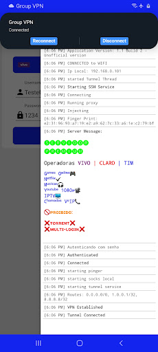 Group VPN é uma Aplicação VPN quer fornecer tráfego a traves de um tunnel ssh onde ó usuário pode está navegando na internet com segurança é privacidade. E necessario ter user e senha para conectar esse app cotacte o dono No telgram: @MzNETT