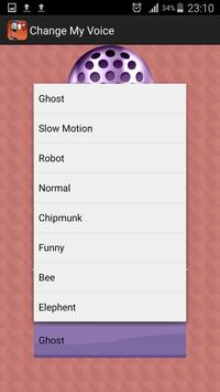 Ghost , slow motion , robot , normal , chipmunk , funny , bee , elephant and many other funny effects to your voice!