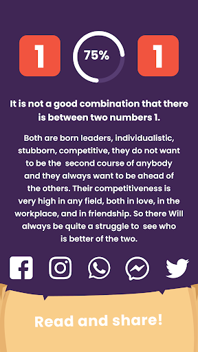 Share predictions and numerology information with everyone! You have the option to do it through the app with instagram, twitter, facebook or whatsapp.