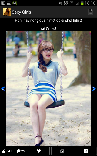 You can view & taste over 10.000 Vietnamese and Asian hot, sexy & cute photo . Moreover, new photos are updated daily and you can login your facebook account to like and comment directly.Main functions:- Update new sexy photos daily (including sexy girls, Vietnamese girls, japanese girls & boobs)- Browse photos in many views- Set photos as wallpaper- bookmark for later browse- Photo Zoom supported- Require mininum permissionsLet's start to browse and download sexy girls & hot girls photos ever!