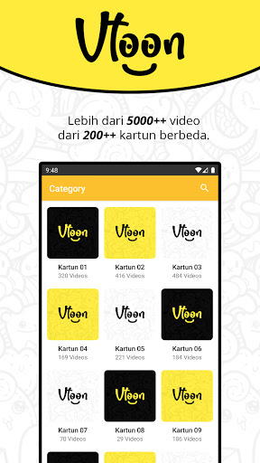 - Lebih dari 5000 video kartun serta lebih dari 200 jenis kategori di dalamnya dan akan bertambah terus.