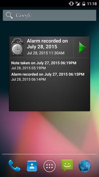 - record from microphone as a simple note, a note scheduled to sound at a given date and time, or a classic alarm