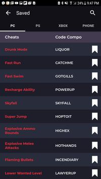 Cheats for GTA 5 are all in one app! From Xbox, PS4, PS3, PC, Phone, every cheat code is inside this app just for you and your game.