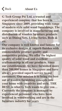 G Tech Group Pte Ltd, a trusted and experienced company that has been in Singapore since 2009, providing wide range of modern style solid wood furnishings. The company is involved in manufacturing and distribution of wooden furniture products such as Dining Sets, Living Series, Beds & etc. Our company is well known and famous for its exclusive designs & superb finishes with commendable product quality and competitive pricing. We offer the highest quality of solid wood and excellent craftsmanship in all our products. Since our establishment, we have furnished more than 200,000 homes in Singapore and have always provided superb service to our customers. Our mission is to bring the best out of wooden furnishing concepts into your home with creativity and style. THE BEST, is what G Tech wants to give you… Currently the company is managed by experienced personnel who have been involved in woodworking and are in the furniture industry for years.